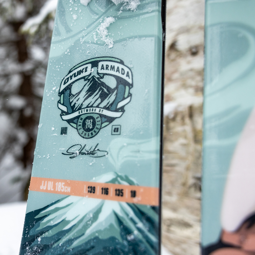 The Limited Edition Armada x OYUKI ARV 116 JJ UL skis combine a classic freestyle shape with a featherweight build and all the surface area you could ever need, no matter how deep the snow.