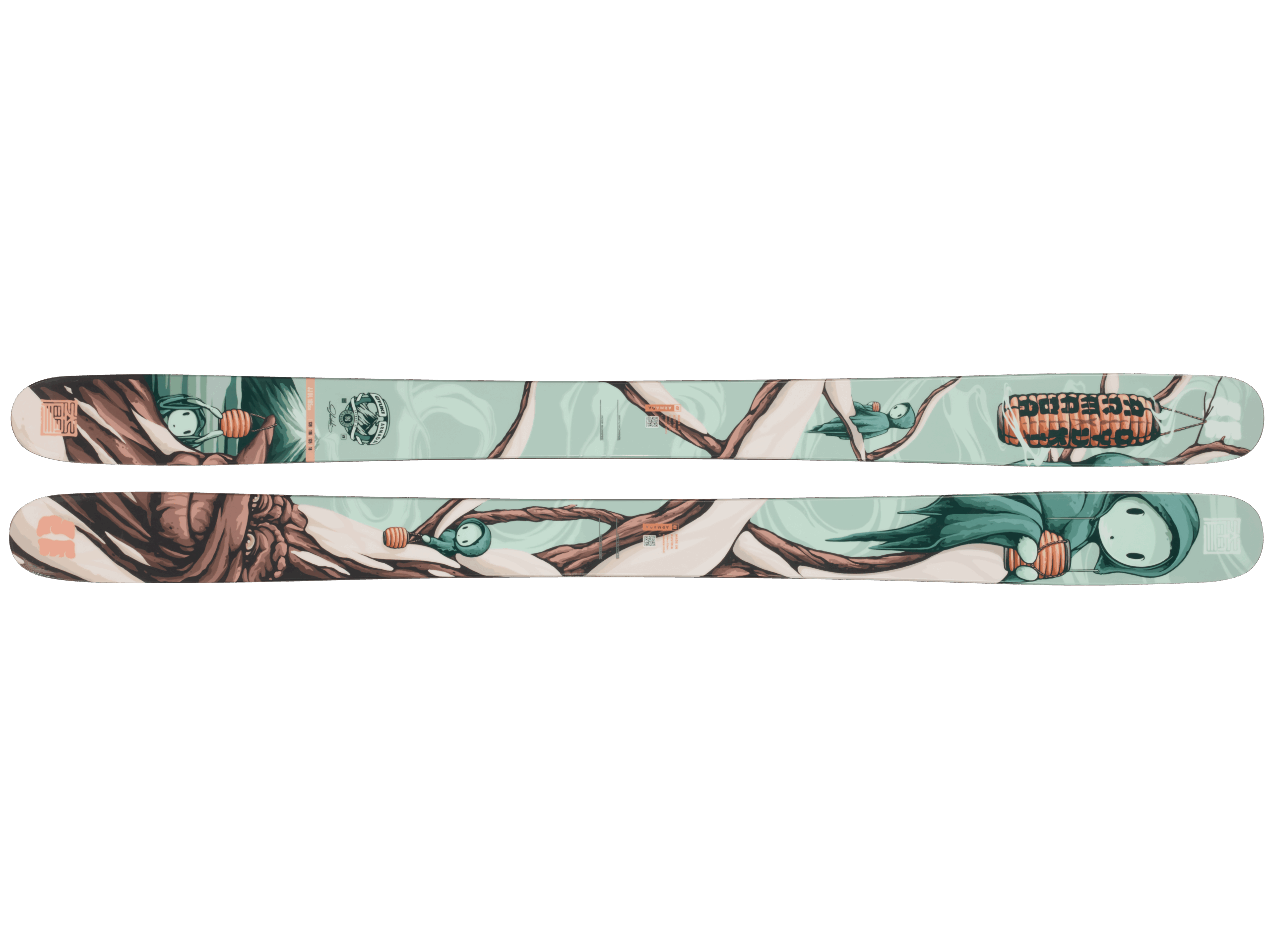 The custom artwork by Mike Shankster draws inspiration from the Kodama, mystical tree spirits from Japanese folklore, reimagined as guardians of Japan’s forests. Shankster’s art is rooted in a lifelong fascination with the natural world and a deep appreciation for the spaces that fuel creativity and connection. His signature style merges bold composition with hand-drawn imperfection, capturing both energy and emotion in every line. For this collaboration, he channeled the feeling of moving through the trees in Niseko’s deep snow, quiet, alive, and full of unseen spirit. The result is a topsheet that feels animated by nature itself, as if the forest is part of the ride, watching, guiding, and flowing with every turn.